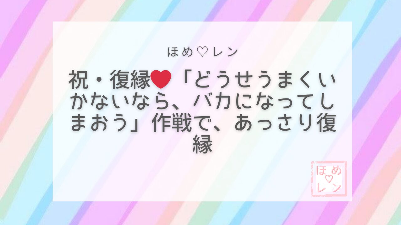 📺 祝・復縁❤️「どうせうまくいかないなら、バカになってしまおう」作戦で、あっさり復縁