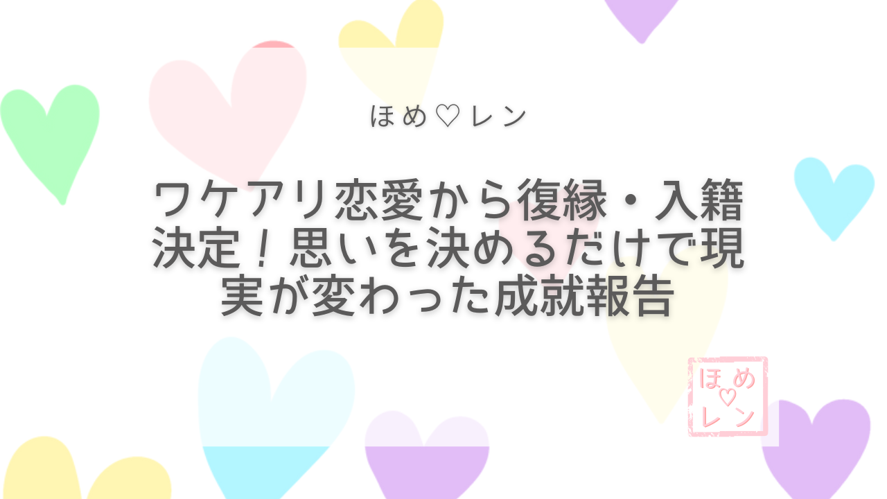 ワケアリ恋愛から復縁・入籍決定!思いを決めるだけで現実が変わった成就報告